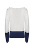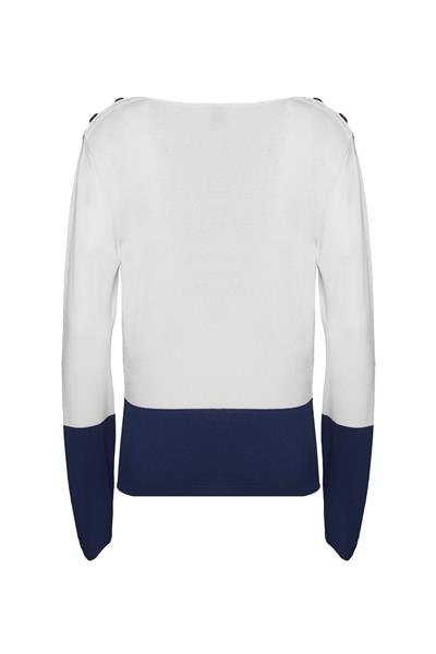 Sweter damski AERONAUTICA MILITARY ghiaccio/blue wykonany został z wiskozy, dzięki czemu jest om bardzo elegancki. Połączenie dwóch kolorów nadaje mu dodatkowego szyku. Wielkim atutem swetra są spersonalizowane guziki na ramionach nawiązujące do militarnego stylu.