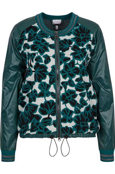 Kurtka damska SPORTALM BLOSSY – oryginalna kurtka w modnej kolorystyce butelkowej zieleni. Tym razem marka Sportalm postawiła na niecodzienne połączenie materiałów: korpus to bardzo przyjemny w noszeniu wzorzysty sweter, natomiast gładkie rękawy wykonane zostały ze śliskiego materiału. Dodatkowo tył kurtki ozdobiony kontrastowym lampasem z nazwą marki.