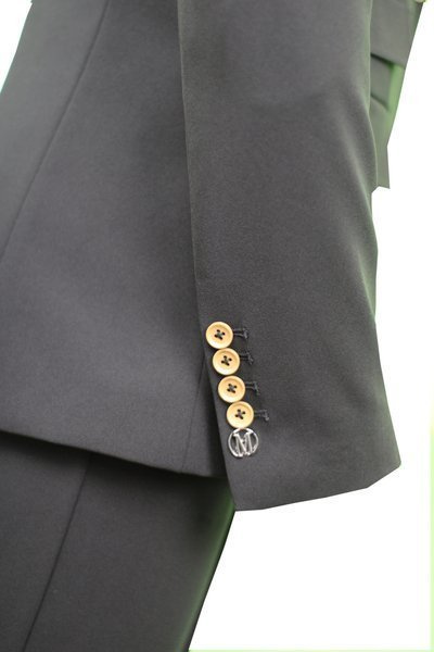 - rękaw wykończony czterema guzikami oraz metalową naszywką z logo marki