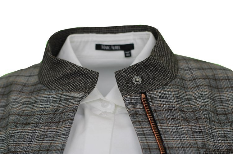 Marynarka damska MARC AUREL ze stójką – elegancka kurtka w kratę o krótkim kroju. Atutem marynarki staje się fakt, że dopasujesz do niej prawie każdy element ze swojej szafy.