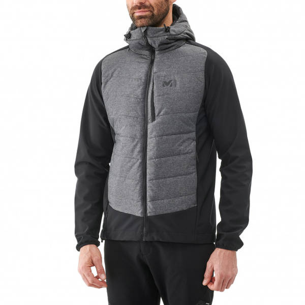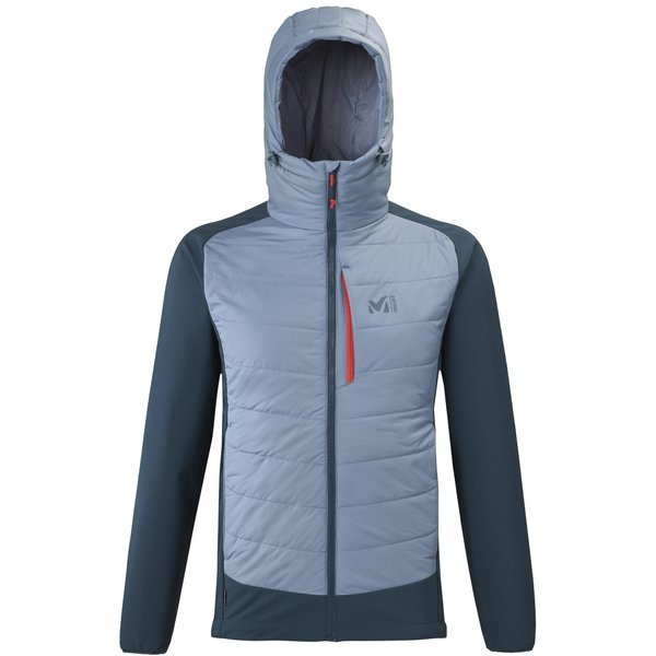 Kurtka męska MILLET HYBRID NANGA HOODIE flint - łączy w sobie zarówno wysoki komfort użytkowania jak i doskonałą izolację termiczną. Użyto w niej ocieplinę Primaloft, która zapewnia suchość oraz ciepło w czasie złej aury.
