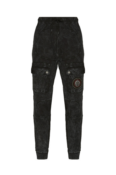 SPODNIE MĘSKIE AERONAUTICA MILITARE CZARNY wykonane z wygodnej bawełnianej tkaniny farbowanej metody TIE DYE. Charakteryzują się kieszeniami z klapami umieszczonymi na nogawkach.