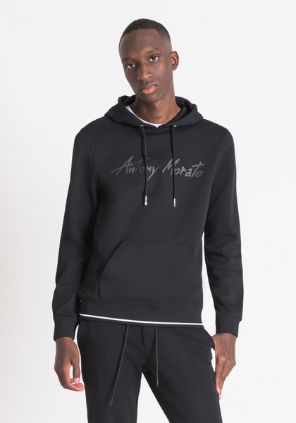 BLUZA MĘSKA ANTONY MORATO REGULAR FIT CZARNY - czarna bluza o kroju regular fit. Maxi nadruk z logo Antony Morato na gumowanej tkaninie definiuje tę bluzę wykonaną z ciepłej tkaniny z domieszką bawełny.