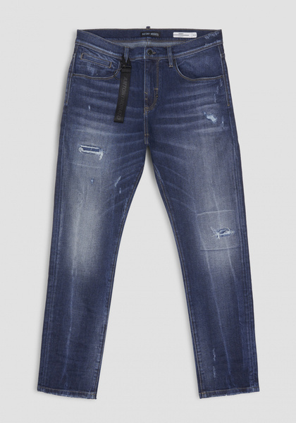 SPODNIE MĘSKIE JEANS ANTONY MORATO KENNY - ciemne spodnie z przetarciami: model „Kenny” jest wykonany z regenerowanego włókna bawełnianego, dzięki czemu jest produktem przyjaznym dla środowiska, ale wciąż modnym.