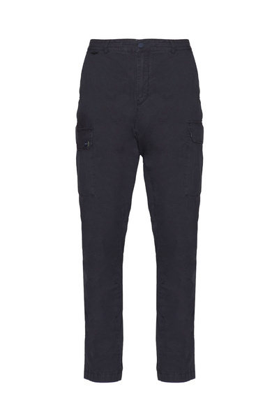Spodnie męskie AERONAUTICA MILITARE navy - klasyczne spodnie w stylu cargo wykonane zostały miękkiej w dotyku bawełny popelinowej. Spodnie te wyróżniają się dużymi bocznymi kieszeniami wyposażonymi w klapy.