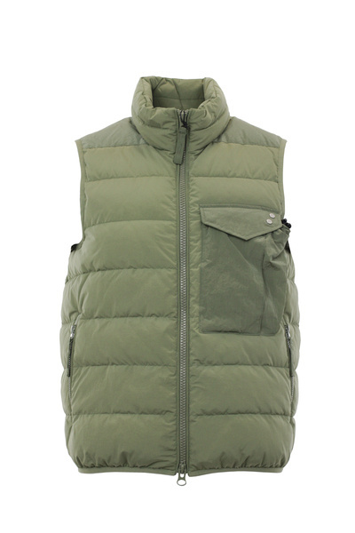 KAMIZELKA MĘSKA BLAUER BLUX02336 - puchowa kamizelka z gniecionymi wstawkami na ramionach i kieszeni na piersi. Wypełniona organicznym, oddychającym i ciepłym włóknem Dupont Sorona.