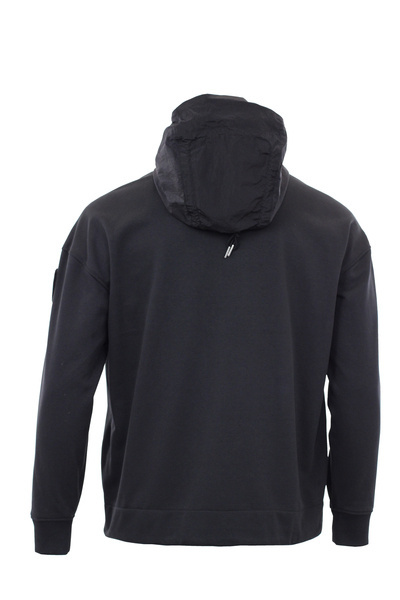 BLUZA MĘSKA BLAUER BLUF02480 - Bawełniana bluza męska z plisowanym nylonowym materiałem na kapturze oraz kieszeniach. Produkt z linii kapsuł B.Tactical inspirowany militarnością, zrewidowany w bardziej miejskim tonie i wzbogacony o szczegóły techniczne.