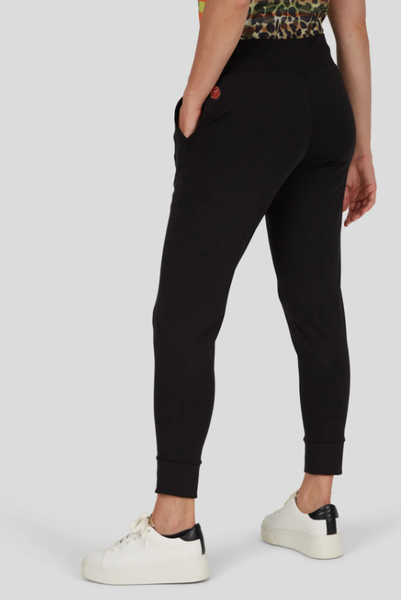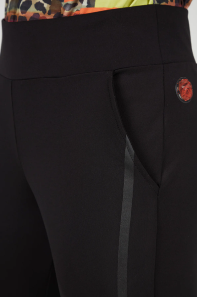 SPODNIE DAMSKIE SPORTALM LOUISE - niezwykle wygodne spodnie marki Sportalm. Elastyczny pas pozwoli na doskonałe dopasowanie do sylwetki. Czarne, połyskujące taśmy na przodzie sprawią, że noga wydaje się jeszcze smuklejsza i dłuższa.