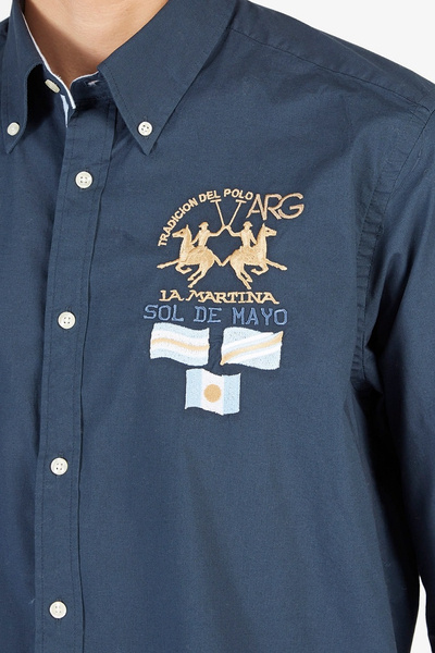 KOSZULA MĘSKA LA MARTINA - koszula męska o klasycznym kroju. Na przodzie wyhaftowane zostało logo marki. Idealnie sprawdzi się na co dzień.