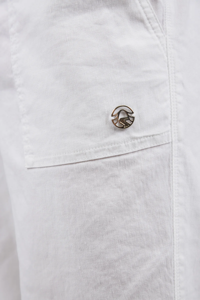 SPODNIE DAMSKIE SPORTALM FLOMMA - lniane spodnie, które powinna mieć każda kobieta w swojej szafie. Dzięki miękkiej gumce w pasie będą one bardzo komfortowe w noszeniu. Przez swój klasyczny biały kolor pasują do każdej rzeczy z naszej garderoby, tworząc udaną stylizację.