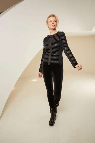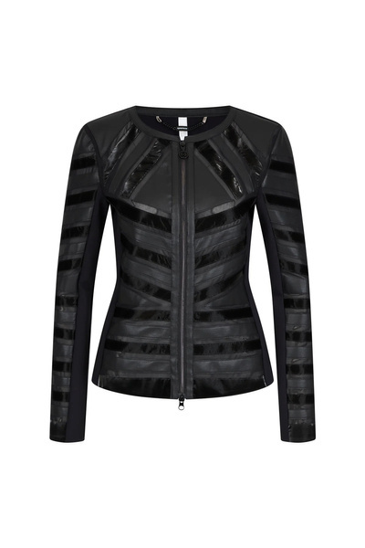 BLUZA DAMSKA SPORTALM BAYA - bluza damska wyróżniająca się za sprawą pasków wykonanych ze sztucznej skóry które zostały naszyte na tiulowy materiał. Boki, rękawy oraz tył wykonane zostały z elastycznego, cienkiego materiału który pozwoli na idealne dopasowanie do sylwetki.