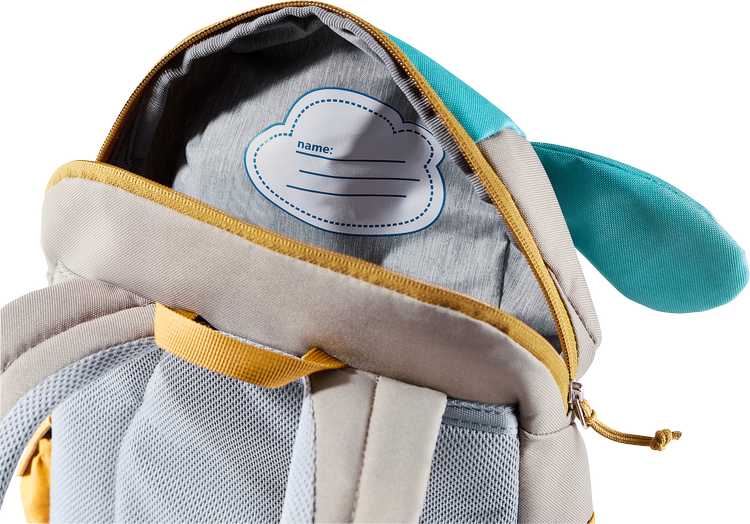 - Wewnątrz plecaka znajduje się naszywka, na której możemy wpisać dane dziecka