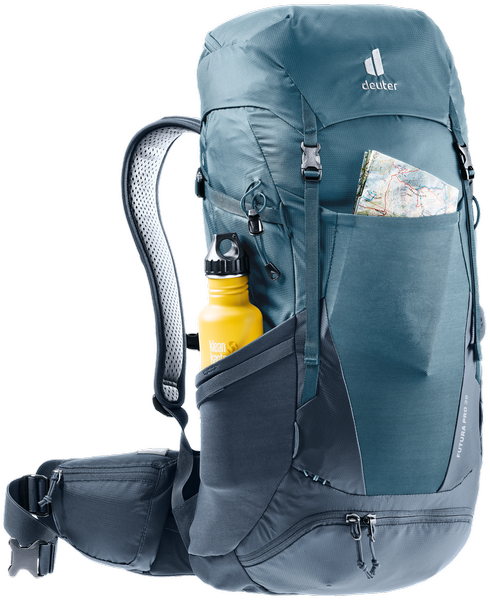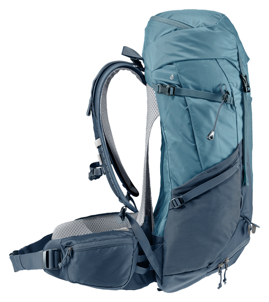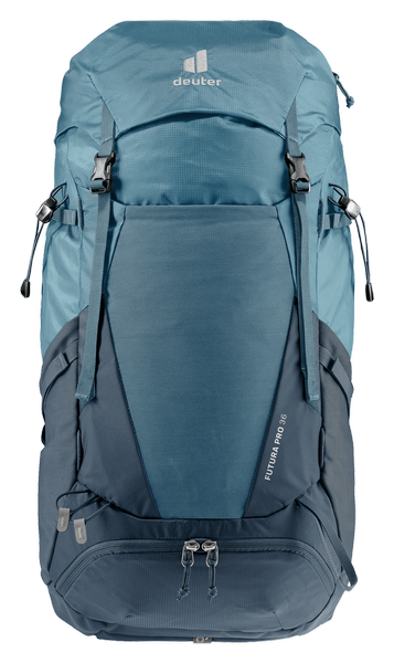 PLECAK DEUTERAC FUTURA PRO 36 ATLANTIC-INK - Przemyślana w każdym szczególe Futura Pro została stworzona z myślą o wielodniowych wycieczkach, na których nie może zabraknąć komfortu. Dlatego plecak na wędrówki ma ergonomiczny siatkowy system nośny Aircomfort Sensic Pro. Zapewnia to maksymalną wentylację pleców dzięki innowacyjnej siateczce.