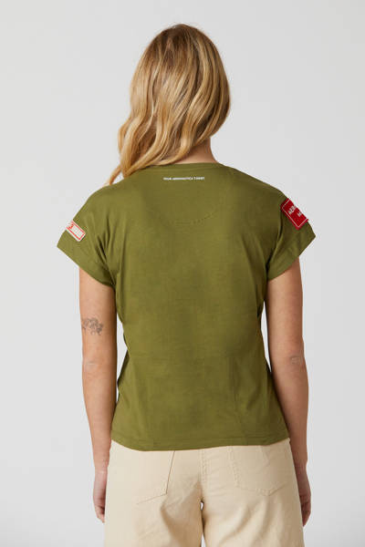 T-SHIRT DAMSKI AERONAUTICA MILITARE - koszulka damska marki Aeronautica Militare. Zestaw naszywek na przodzie oraz rękawach poświęcony został światu Włoskiego lotnictwa. Ten odważny t-shirt idealnie sprawdzi się na co dzień.