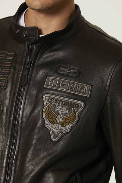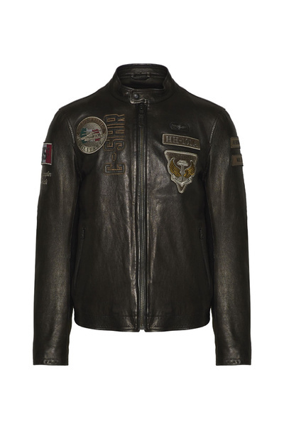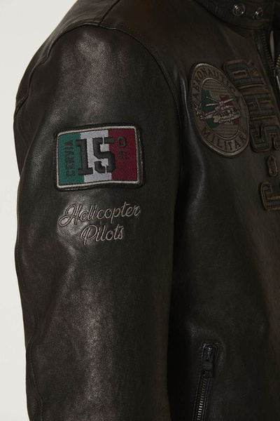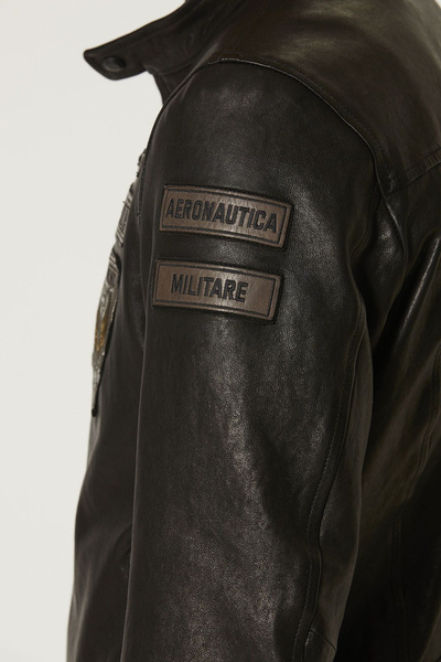 KURTKA SKÓRA MĘSKA AERONAUTICA MILITARE - wykonana z niezwykle przyjemnej w dotyku skóry owczej. Wyróżniają ją liczne naszywki inspirowane symbolami 15. Skrzydła, założonego w Ciampino 1 lipca 1931 roku.
