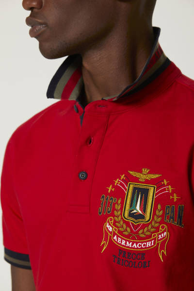 POLO MĘSKIE AERONAUTICA MILITARE - koszulka polo włoskiej marki Aeronautica Militare. Haft na przodzie poświęcony został najsłynniejszego zespołu akrobacyjnego na świecie i jego samolotu Aermacchi MB-339.