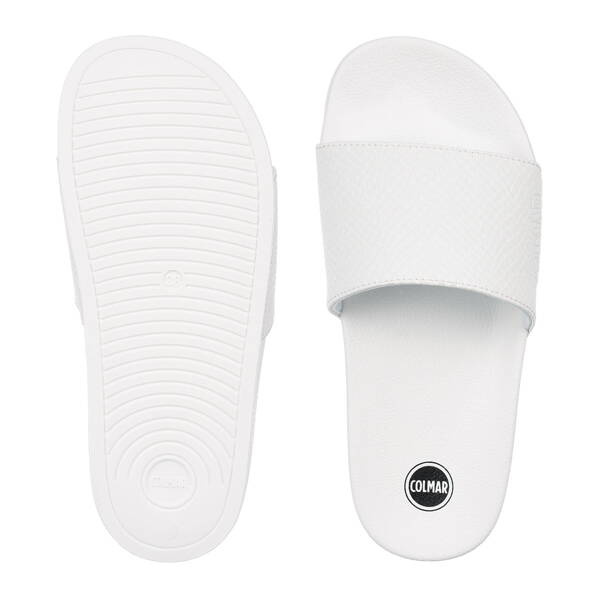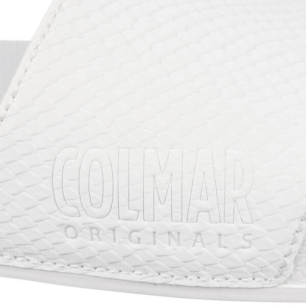 Klapki damskie COLMAR Slipper Phyton White - klapki damskie z kolekcji plażowej. Skóra pytona i luminescencyjny efekt paska z wytłoczonym logo Colmar Originals na boku nadaje osobowości temu wyjątkowemu i kobiecemu butowi.
