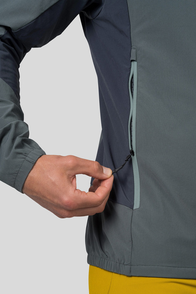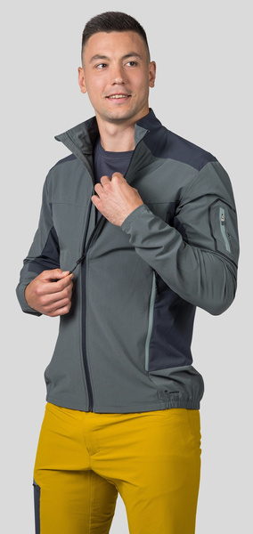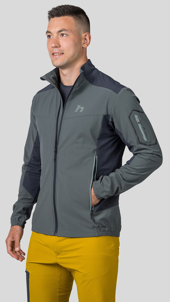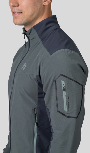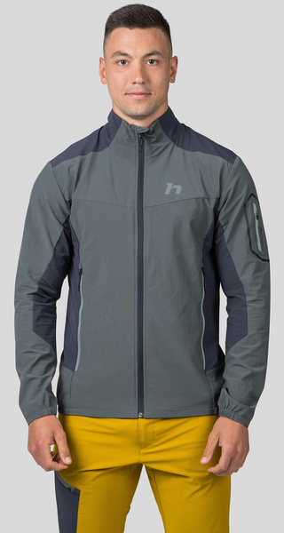 Kurtka męska HANNAH SEUMAS II urban chic/india ink - idealna kurtka do trekkingu czy ferraty, dzięki krojowi Alpine Fit, który nie krępuje ruchów oraz dopasowuje się do sylwetki. Materiał AFT Tech Stretch, z którego została wykonana jest elastyczny, lekki i bardzo przewiewny.