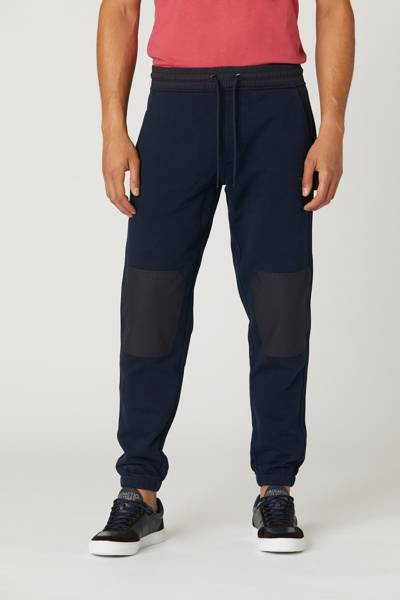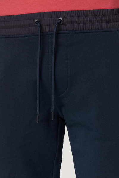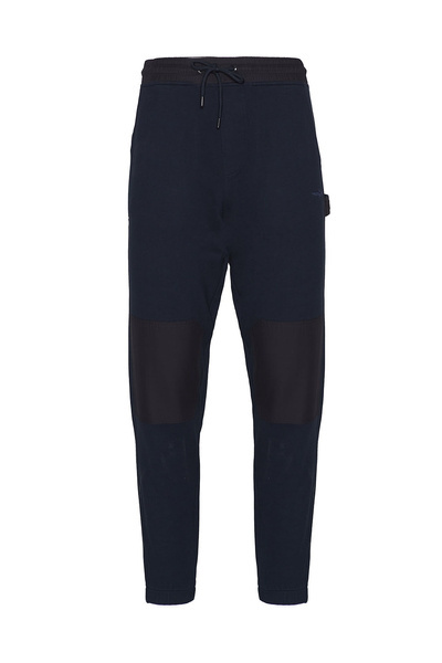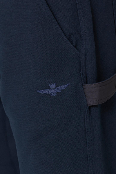 SPODNIE MĘSKIE AERONAUTICA MILITARE - spodnie dresowe ze wstawkami z nylonu na kolanach oraz w pasie. Na lewej nogawce znajduje się słupek roboczy. Spodnie te mają dwie otwarte kieszenie z przodu oraz dwie z tyłu. Na lewej nogawce wyhaftowany jest orzełek z wieżyczką. Pas regulowany jest sznurkiem.