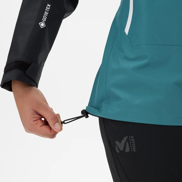 KURTKA DAMSKA MILLET K HYBRI GTX J W DORITE/SAPHIR - kurtka damska marki Millet. Zastosowana membrana GORE-TEX na rękawach oraz GORE-TEX Paclite® na pozostałej części kurtki skutecznie ochroni Cię przed deszczem. Dwie duże kieszenie z wodoodpornym zamkiem pozwoli Ci schować najpotrzebniejsze rzeczy.
