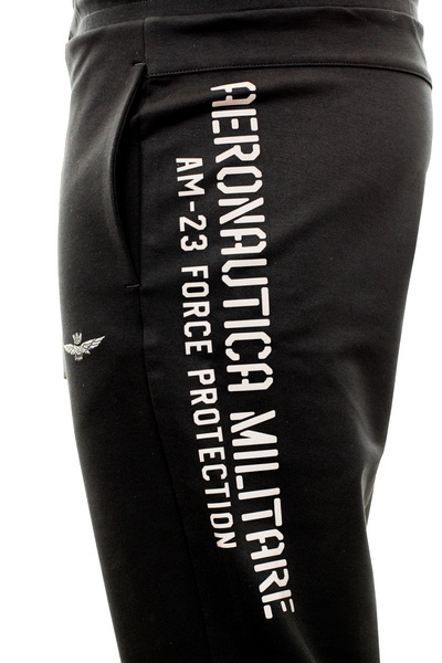 SPODNIE MĘSKIE AERONAUTICA MILITARE - klasyczne spodnie regulowane w pasie za pomocą sznurka. Oryginalności dodaje im odblaskowy napis na lewej nogawce.