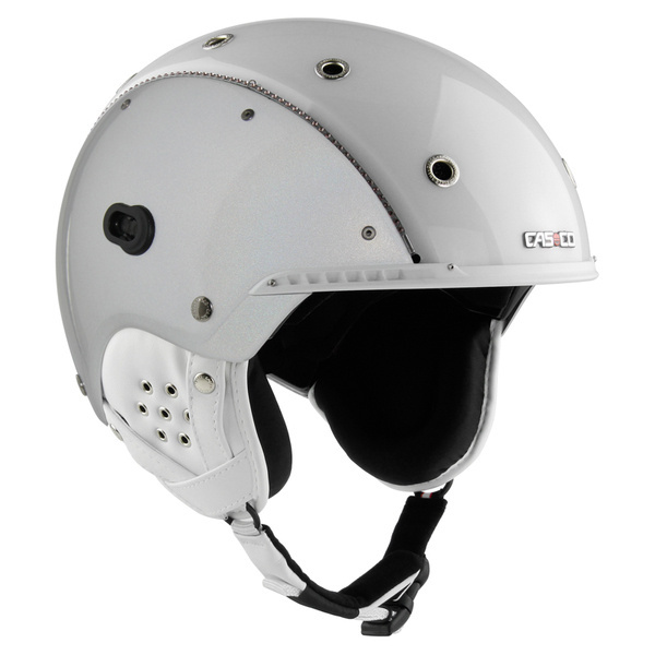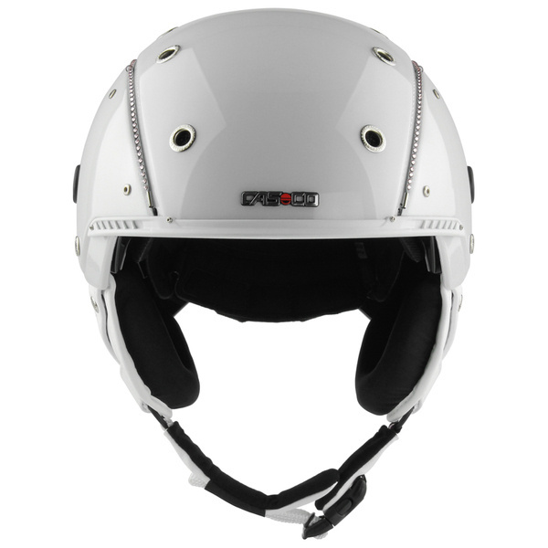 KASK NARCIARKI CASCO SP-3 LIMITED CRYSTAL WHITE - Elegancki kask z gumkami z prawdziwymi kryształkami Swarovskiego. Dodatkowo boczne panele pięknie odbijają światło w zależności od jego padania, zmieniając swoje kolory. Wykonany został metodą Monocoque-Ultra (wzmocniony odlew stalowymi nitami). Zapinany jest poprzez klamrę pod szyją. Rozmiar można dostosować do siebie dzięki systemowi disk fit VARIO, który pozwala regulować kask zarówno w obwodzie jak i nachyleniu, tak aby gogle dopasować do policzków i nosa. Zastosowanie Clima Control powoduje automatyczna wentylację poprzez wbudowane otwory. Wnętrze jest wymienne i nadaje się do prania. W kasku można zastosować gogle mocowane za pomocą systemu Magnet Link (FX-70), ponieważ ma wbudowane otwory mocujące, ale również klasyczne gogle. Posiada on wiele standardów bezpieczeństwa oraz certyfikaty takie jak TUV( testowanie produktu), ISO 9001 (jakość produktu)