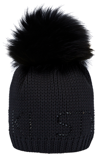 CZAPKA DAMSKA SPORTALM - czapka zimowa marki Sportalm. Ozdobiona została napisem "SKI STYLE" z błyszczących kryształków. Duży pompon z naturalnego futra możesz w każdej chwili odpiąć. Komfort termiczny zapewnia podszewka z ciepłego polaru.