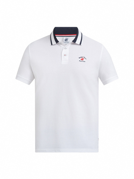 POLO MĘSKIE BEVERLY HILLS POLO CLUBpolo męskie w klasycznym białym kolorze. Przód został ozdobiony haftem z nazwą marki.