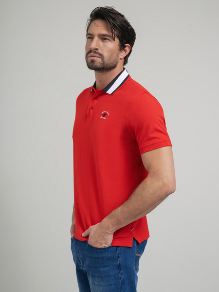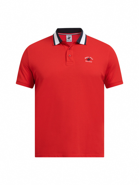 POLO MĘSKIE BEVERLY HILLS POLO CLUB - polo męskie w klasycznym czerwonym kolorze. Przód został ozdobiony haftem z nazwą marki.