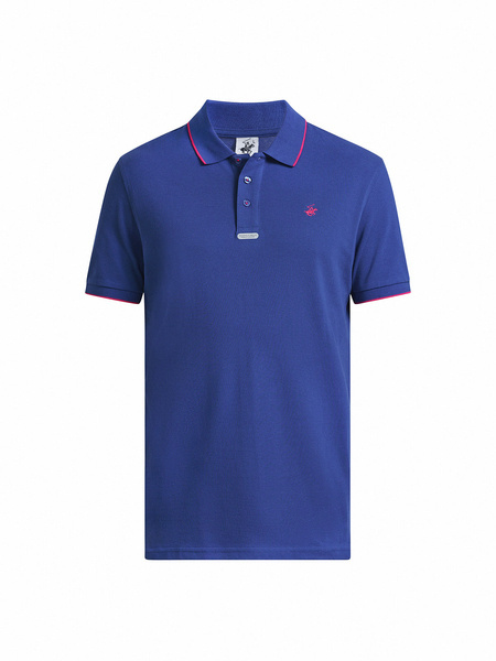 POLO MĘSKIE BEVERLY HILLS POLO CLUB - Stylowa, bawełniana koszulka polo. Logo w kontrastującym kolorze doskonale współgra z kołnierzykiem i ściągaczami na rękawach.
