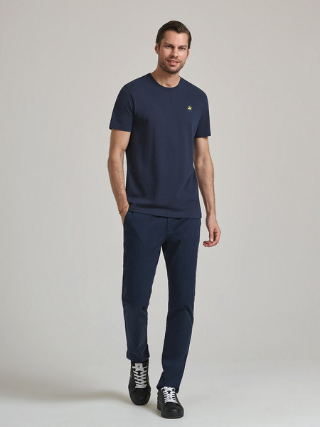 T-SHIRT MĘSKI BEVERLY HILLS POLO CLUB - granatowa męska koszulka z nadrukiem. Wykonana z miękkiego i przyjemnego w dotyku materiału.