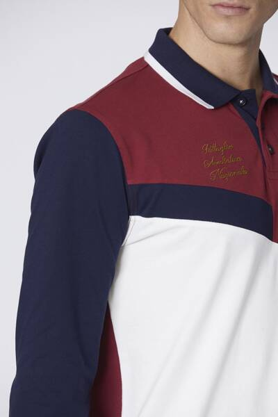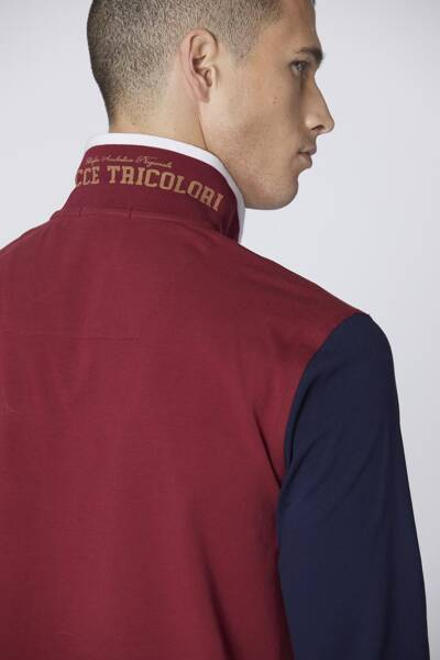 POLO MĘSKIE AERONAUTICA MILITARE - różnokolorowa polówka z długim rękawem marki Aeronautica Militare. Ozdobiona została naszywką Frecce Tricolori oraz trójkolorowymi śladami, które pozostawiły ich samoloty.