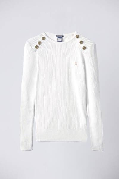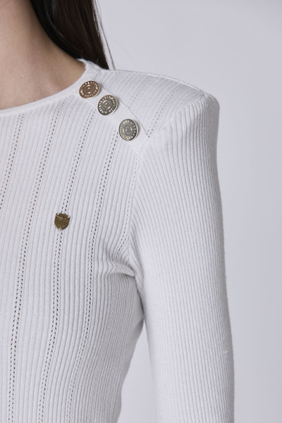 SWETER DAMSKI AERONAUTICA MILITARE - sweter ozdobiony złotymi guzikami na ramionach to elegancki i stylowy element garderoby, który dodaje charakteru każdej stylizacji. Idealny do noszenia na co dzień, ale również na specjalne okazje.