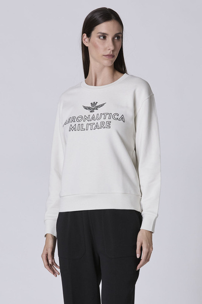 BLUZA DAMSKA AERONAUTICA MILITARE - idealna do codziennych stylizacji, świetnie komponuje się z dżinsami czy spodniami dresowymi. Ozdobiona gumowym nadrukiem z nazwą marki na przodzie.