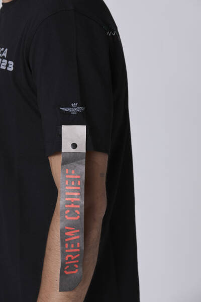 T-SHIRT MĘSKI AERONAUTICA MILITARE - t-shirt, który nawiązuje do Szefa Załogi, czyli osobę odpowiedzialną za kontrolę przed, w trakcie oraz po locie. Odblaskowy nadruk oraz trójkolorowy, zygzakowaty szew na tyle dodaje jej oryginalności.