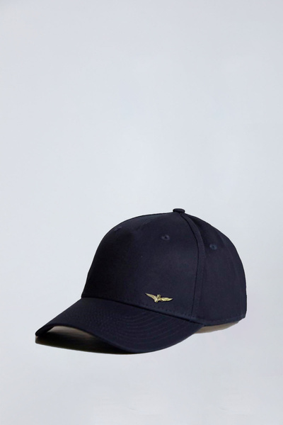 CZAPKA Z DASZKIEM AERONAUTICA MILITARE - cechuje ją minimalistyczny design z eleganckim akcentem w postaci metalowego orła z wieżyczką, który nadaje jej wyjątkowego charakteru.
