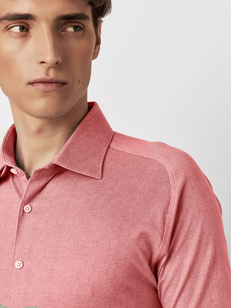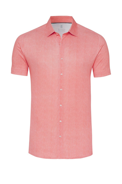KOSZULA MĘSKA DESOTO KRÓTKI RĘKAW - styl i wygoda w nowoczesnym wydaniu — koszula męska marki Desoto w oryginalnym różowym kolorze to świetna propozycja na cieplejsze dni. Wykonana z elastycznego, oddychającego materiału, który nie wymaga prasowania, idealnie sprawdzi się zarówno w codziennych, jak i smart-casualowych stylizacjach. Raglanowe rękawy gwarantują większą swobodę ruchów i sportowy akcent, a krótki rękaw nadaje jej lekkości i świeżości.