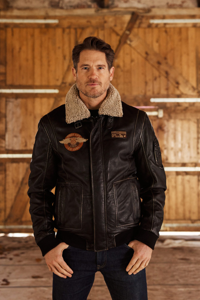 KURTKA SKÓRA MĘSKA DONDERS - skórzana kurtka Donders to propozycja dla mężczyzn, którzy chcą podkreślić swój charakter i indywidualny styl. Wykonana z wysokiej jakości naturalnej skóry, łączy w sobie trwałość i komfort użytkowania z wyjątkowym designem. Na przodzie kurtki umieszczono naszywki, które nadają jej nieco militarnego i motocyklowego charakteru. Całość dopełnia kontrastowy, beżowy kożuszek na kołnierzu – stylowy detal, który przyciąga uwagę i jednocześnie zapewnia ciepło w chłodniejsze dni.