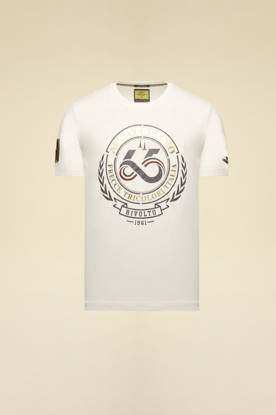 T-SHIRT MĘSKI AERONAUTICA MILITARE - wyjątkowa koszulka włoskiej marki Aeronautica Militare, stworzona z okazji 65. rocznicy powstania Frecce Tricolori – słynnej włoskiej grupy akrobacyjnej. Model wyróżnia się unikalnym nadrukiem i detalami nawiązującymi do historii zespołu, podkreślającymi dumę i tradycję lotnictwa wojskowego. Dodatkowo koszulka jest zapakowana w personalizowany woreczek, co czyni ją idealnym pomysłem na prezent dla miłośników lotnictwa.