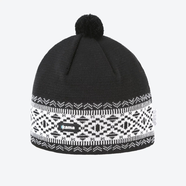 Czapka Kama AW74 CZARNY - czapka Kama z wełny merino to połączenie komfortu i stylu na zimowe dni. Wykonana z wysokiej jakości wełny merino, zapewnia ciepło, oddychalność i odprowadza wilgoć. Klasyczny czarno-biały wzór i pompon na czubku dodają jej elegancji i uroku. Idealna do codziennych zimowych stylizacji.
